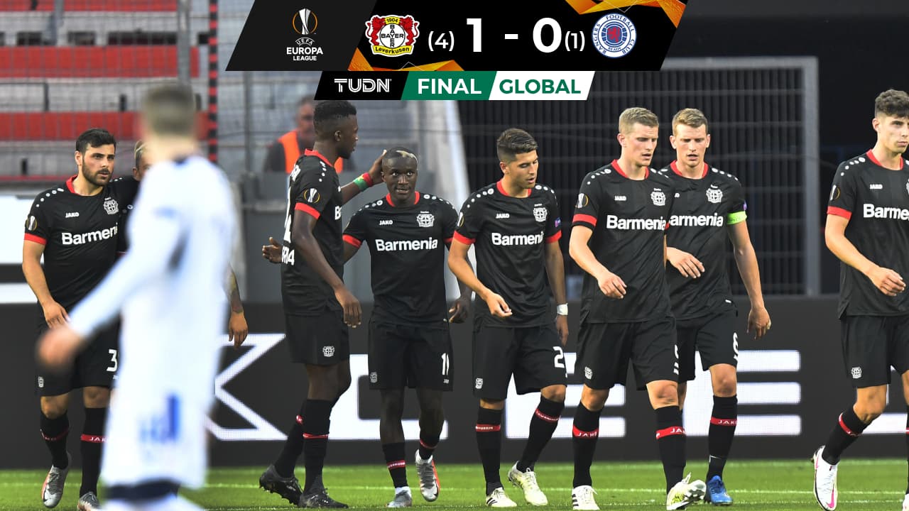 El triunfo por 1-3 en Ibrox, el pasado 12 de marzo, había situado al conjunto alemán, procedente de la Liga de Campeones, a un paso del billete para los cuartos de final, que completó en el Bay Arena por 1-0. El pase fue del chileno Charles Aranguiz y el gol de Diaby en el minuto 51 para sentenciar la eliminatoria.