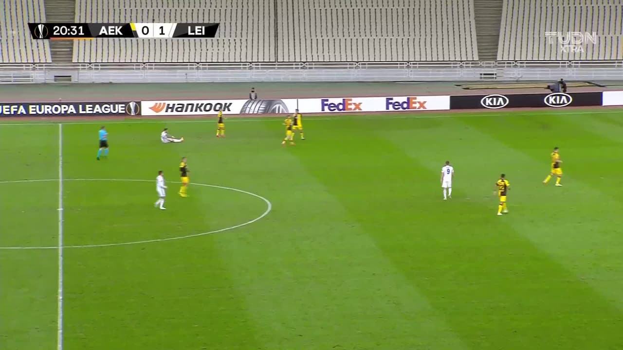 Petros Mantalos (AEK Athens) ha sido amonestado con tarjeta amarilla por juego peligroso.