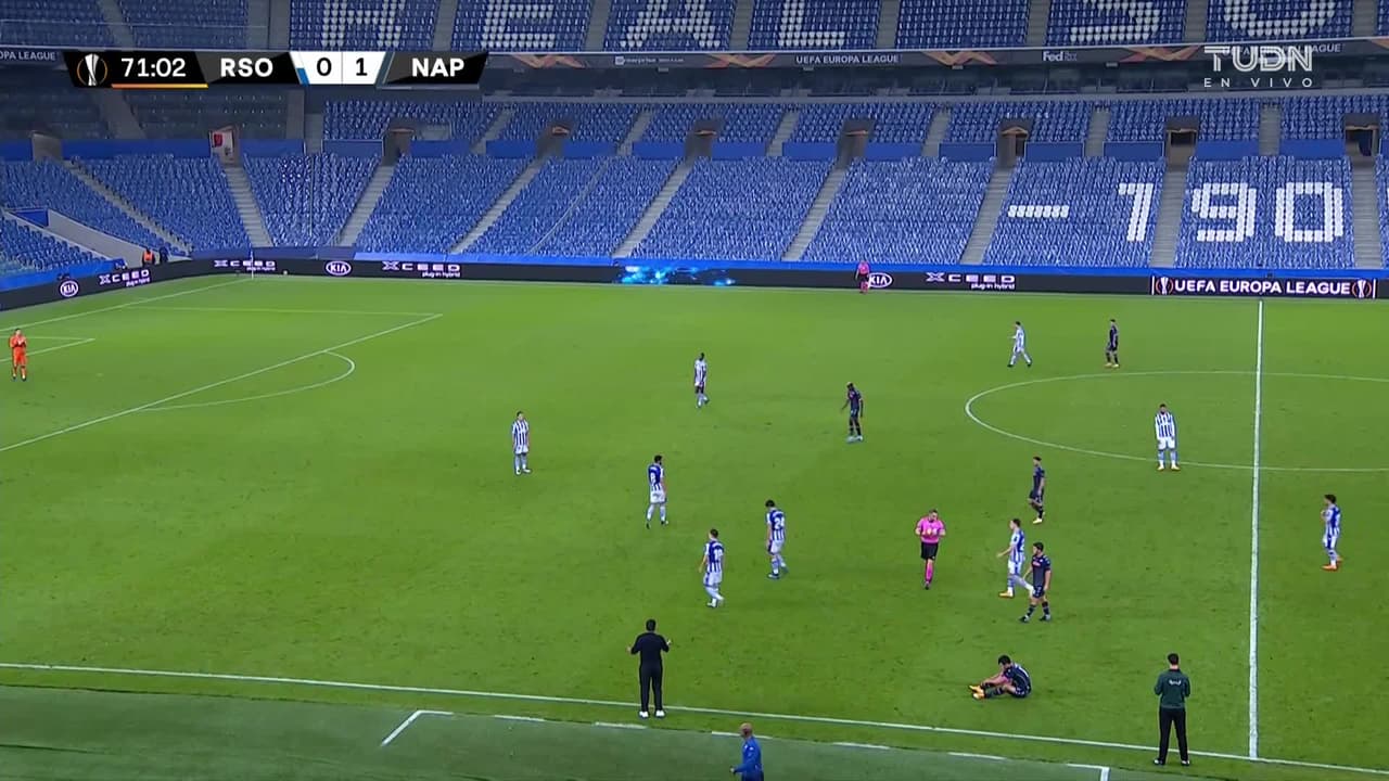 Robin Le Normand (Real Sociedad) ha sido amonestado con tarjeta amarilla por juego peligroso.