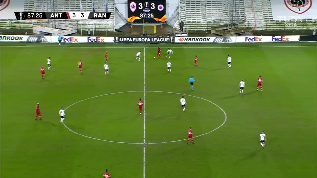 Abdoulaye Seck (Royal Antwerp) segunda tarjeta amarilla por tocar el balón con la mano.