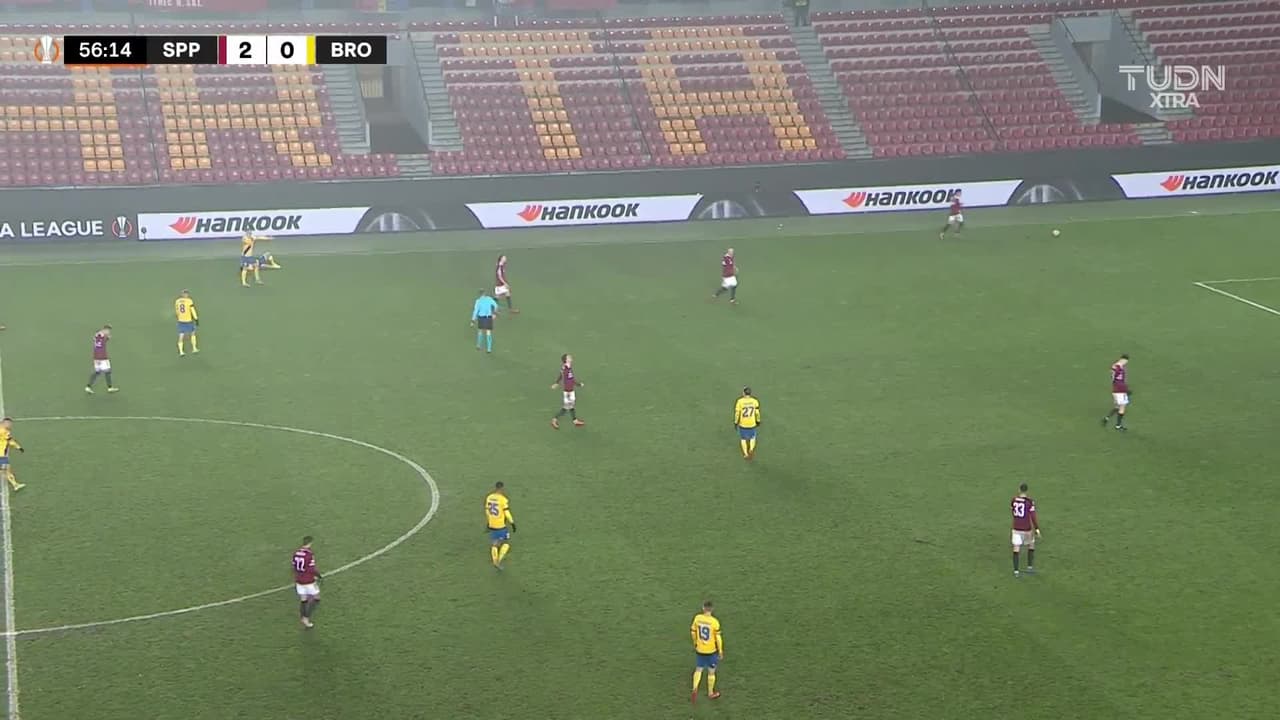 Tomás Wiesner (Sparta Prague) segunda tarjeta amarilla por juego peligroso.