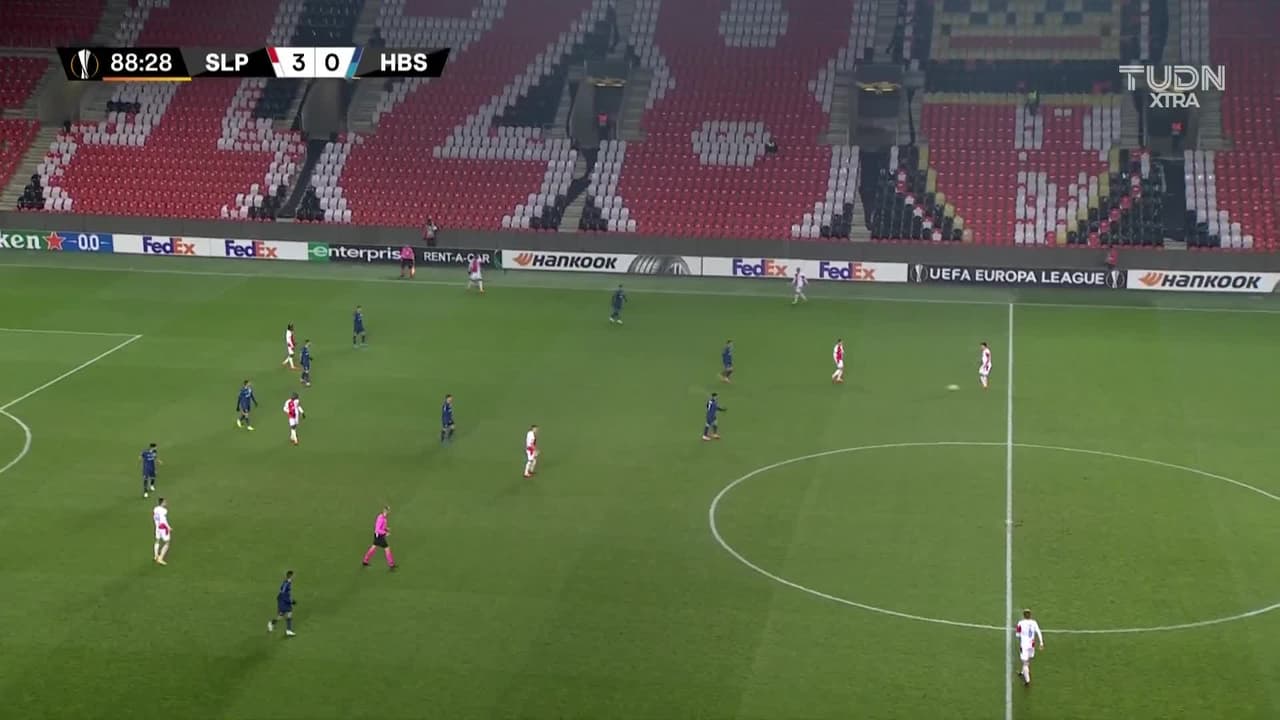 Tiro atajado junto al lado derecho de la portería. Abdallah Dipo Sima (Slavia Prague) zurdazo desde el centro del área. Asistencia de David Zima pase largo.