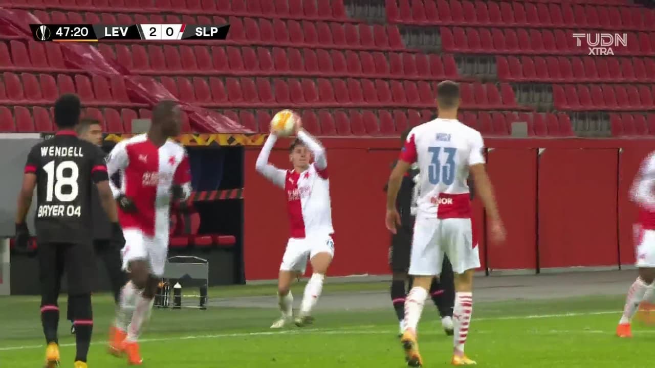 Tiro atajado. Abdallah Dipo Sima (Slavia Prague) Disparo con la derecha desde el lado derecho dentro del área.