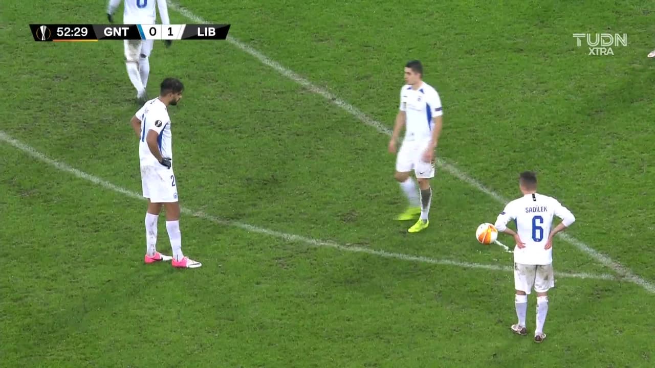 Tiro atajado raso al centro del arco. Abdulla Yusuf Helal (Slovan Liberec) Disparo con la derecha desde fuera del área.