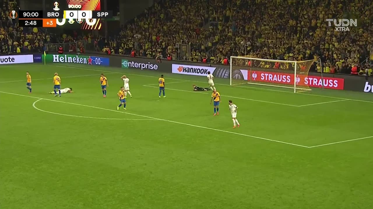 Remate parado. Adam Hlozek (Sparta Prague) remate con la derecha desde fuera del área.