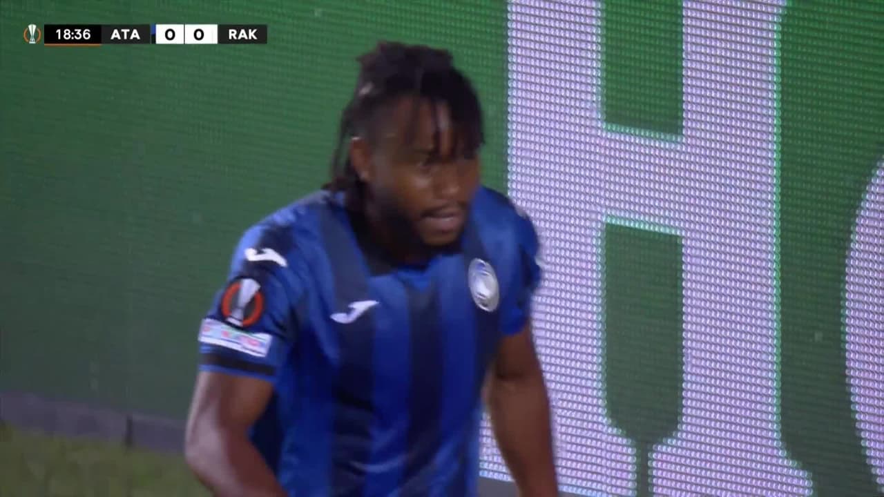 Tiro atajado al ángulo superior derecho. Ademola Lookman (Atalanta) Disparo con la derecha sin ángulo desde la izquierda. Asistencia de Charles De Ketelaere.