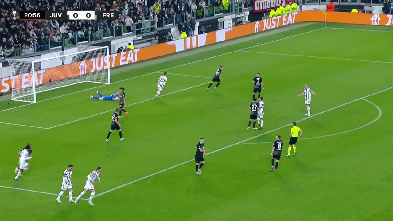 Tiro atajado. Adrien Rabiot (Juventus) zurdazo desde fuera del área.
