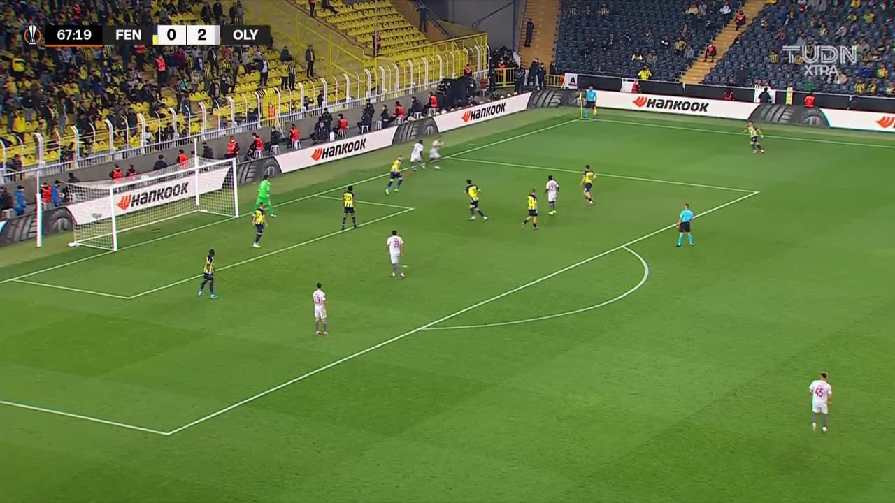 Tiro atajado raso al centro del arco. Aguibou Camara (Olympiakos) Disparo con la derecha desde el centro del área. Asistencia de Tiquinho Soares.