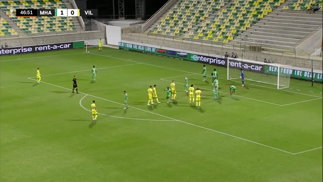 Tiro atajado raso al centro del arco. Aïssa Mandi (Villarreal) Disparo con la derecha a quemarropa desde el lado izquierdo. Asistencia de Ramon Terrats.