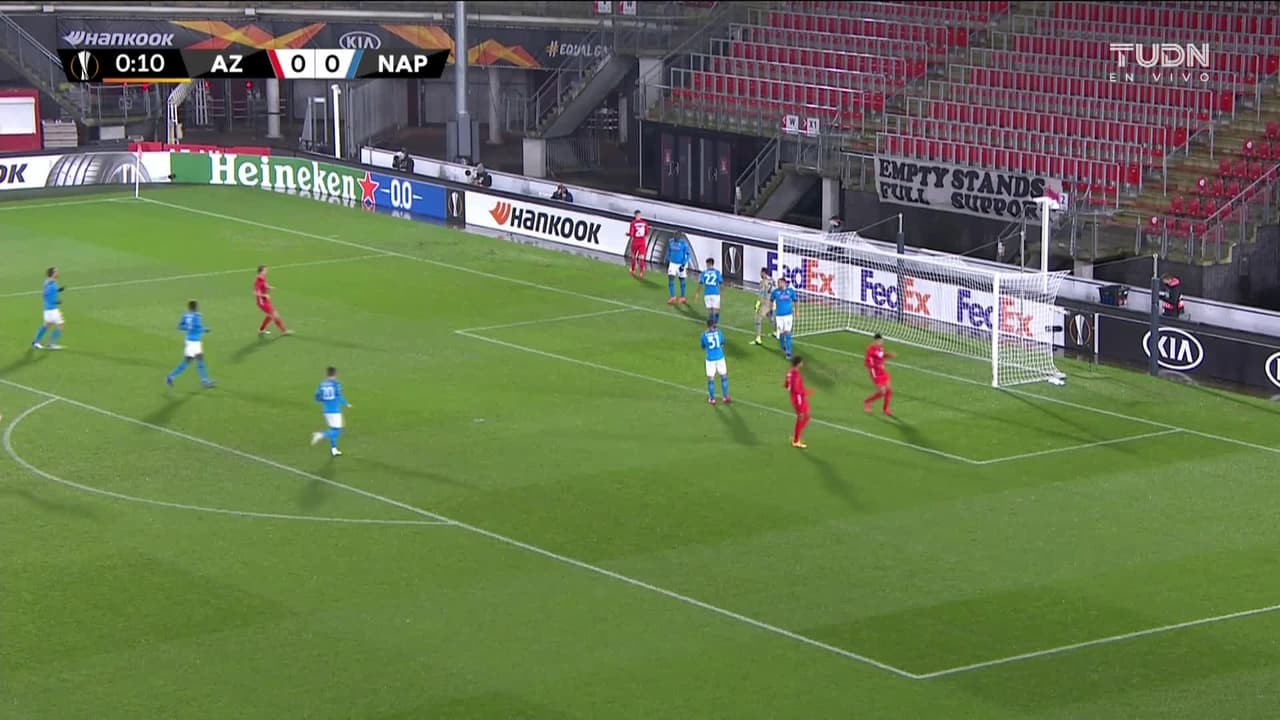Tiro atajado por abajo a la izquierda. Albert Gudmundsson (AZ) zurdazo sin ángulo desde la izquierda. Asistencia de Teun Koopmeiners pase largo.