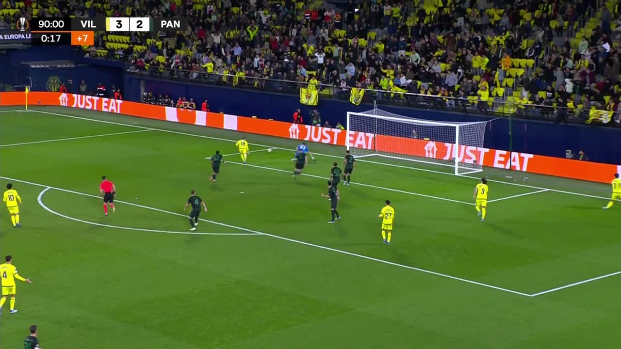 Tiro atajado por abajo a la izquierda. Alberto Moreno (Villarreal) zurdazo a quemarropa desde el lado izquierdo.