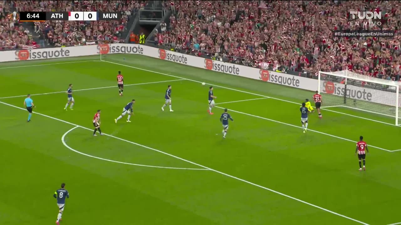 Tiro atajado por abajo a la izquierda. Alex Berenguer (Athletic Club) zurdazo desde fuera del área. Asistencia de Maroan Sannadi.