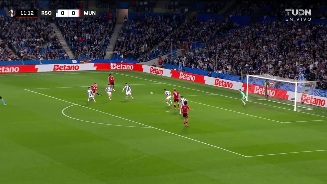 ¡TIRO ATAJADO! disparo por Alejandro Garnacho.