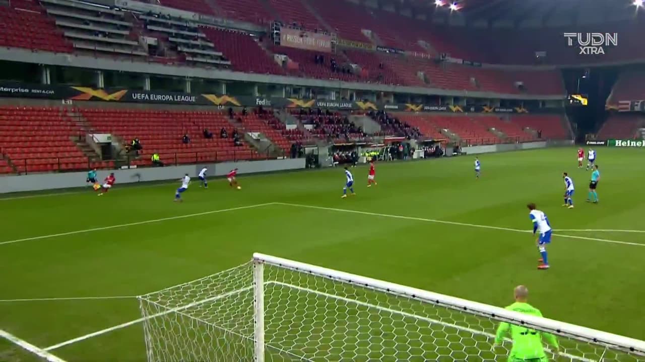 Tiro atajado junto al lado derecho de la portería. Aleksandar Boljevic (Standard Liège) zurdazo desde fuera del área. Asistencia de Gojko Cimirot.