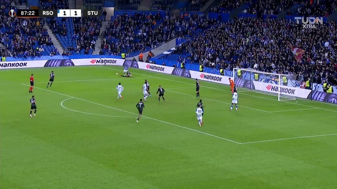 Tiro atajado raso al centro del arco. Alexander Isak (Real Sociedad) Disparo con la derecha desde el lado derecho dentro del área. Asistencia de Adnan Januzaj después de un pase en profundidad.