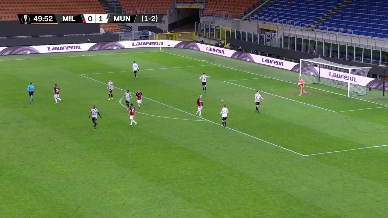 Tiro atajado junto al lado derecho de la portería. Alexis Saelemaekers (Milan) Disparo con la derecha desde el lado izquierdo dentro del área. Asistencia de Rade Krunic.