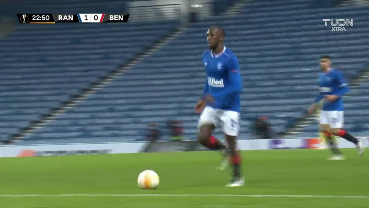 Tiro atajado raso al centro del arco. Alfredo Morelos (Rangers) Disparo con la derecha desde fuera del área. Asistencia de Steven Davis.