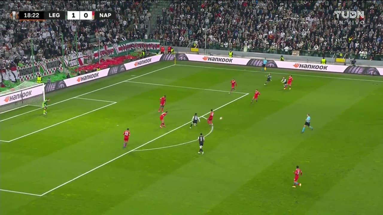 Tiro atajado raso al centro del arco. André-Frank Zambo Anguissa (Napoli) disparo de cabeza a quemarropa desde el lado derecho.