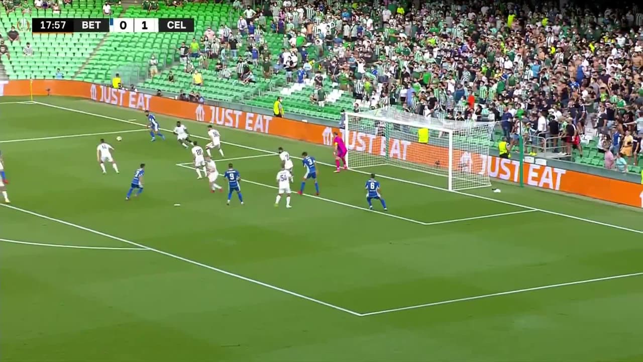 Remate parado por bajo a la izquierda. Andrés Guardado (Real Betis) remate de cabeza desde el centro del área. Asistencia de Nabil Fekir con un centro al área.