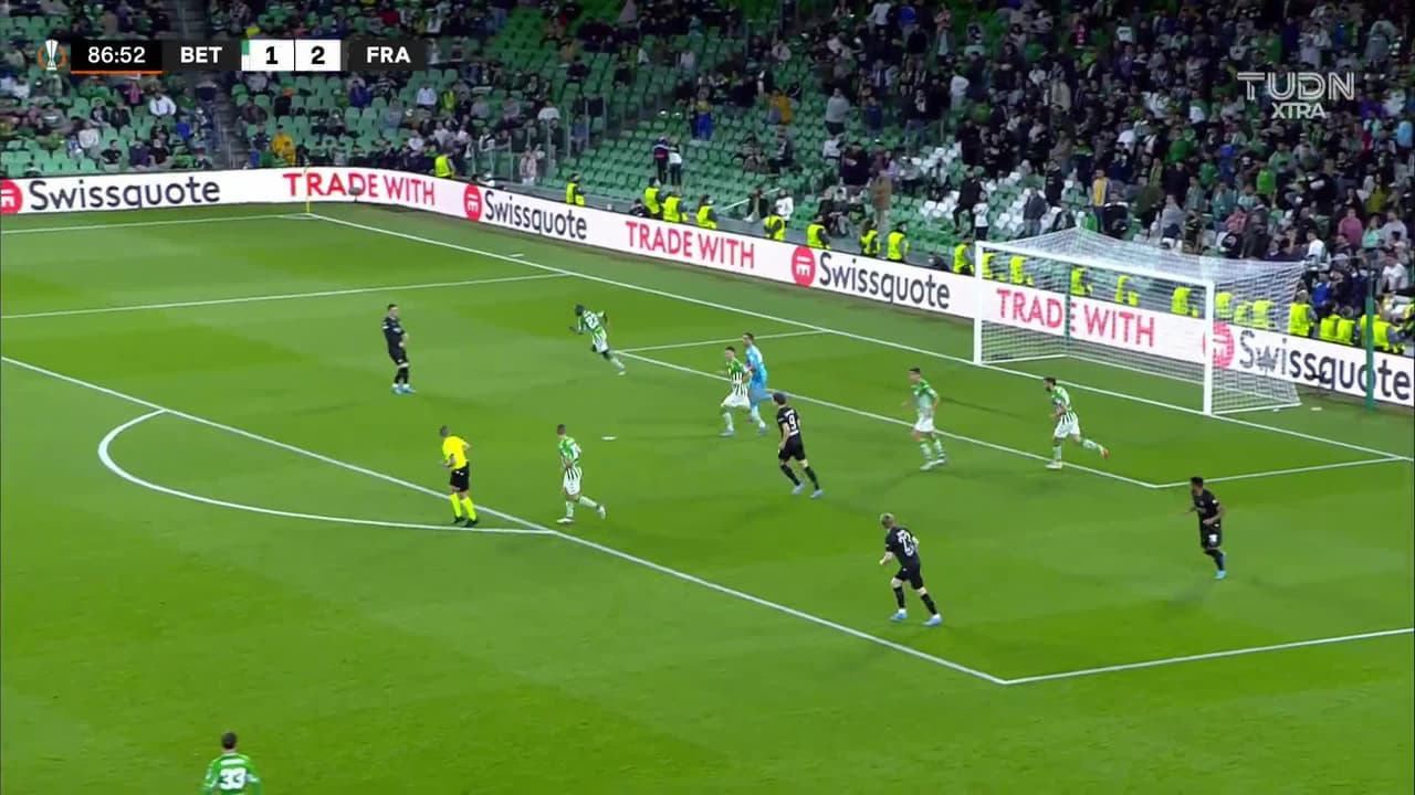 Tiro atajado raso al centro del arco. Ansgar Knauff (Eintracht Frankfurt) Disparo con la derecha desde el lado derecho dentro del área. Asistencia de Sam Lammers.