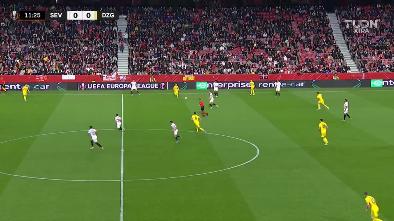 Tiro atajado raso al centro del arco. Anthony Martial (Sevilla) Disparo con la derecha desde el lado derecho dentro del área. Asistencia de Ivan Rakitic después de un pase en profundidad.