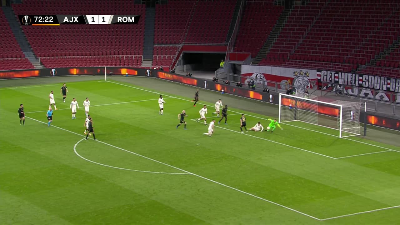 Tiro atajado. Antony (Ajax) zurdazo desde muy cerca.