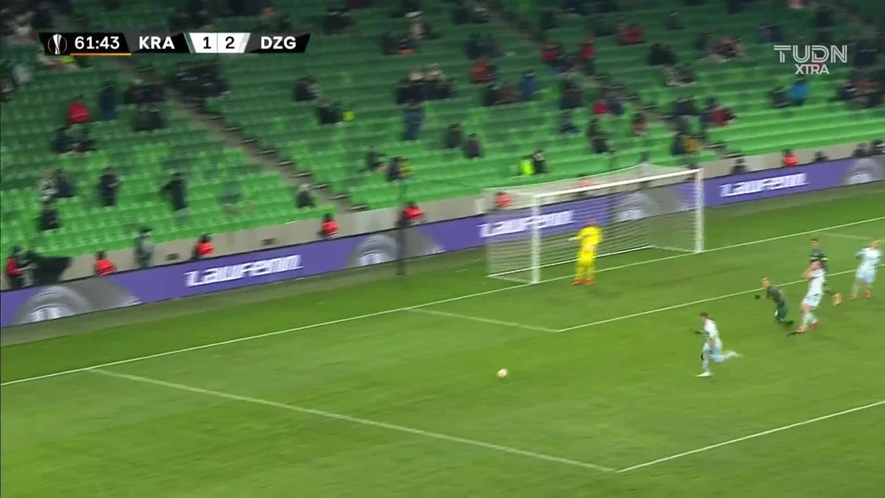 Tiro atajado Por arriba en el centro del arco. Arijan Ademi (Dinamo Zagreb) Disparo con la derecha desde el lado izquierdo dentro del área.