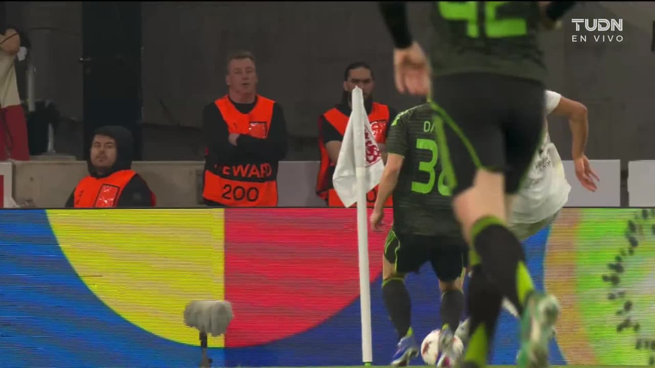 Tiro atajado junto al lado derecho de la portería. Badredine Bouanani (VfB Stuttgart) zurdazo desde el lado derecho dentro del área. Asistencia de Atakan Karazor.