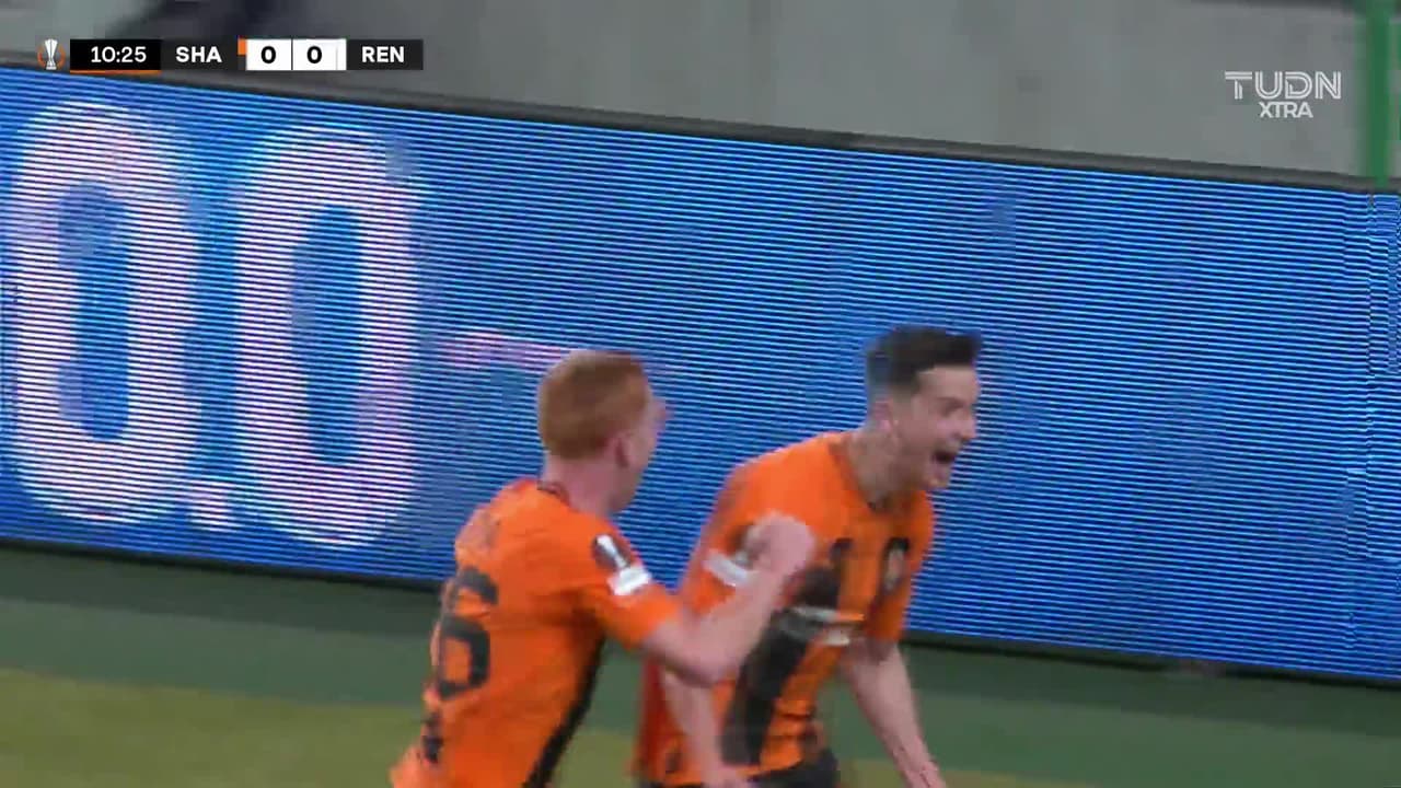 Tiro atajado por abajo a la izquierda. Bohdan Mykhailichenko (Shakhtar Donetsk) zurdazo desde el lado izquierdo dentro del área. Asistencia de Oleksandr Zubkov pase largo.