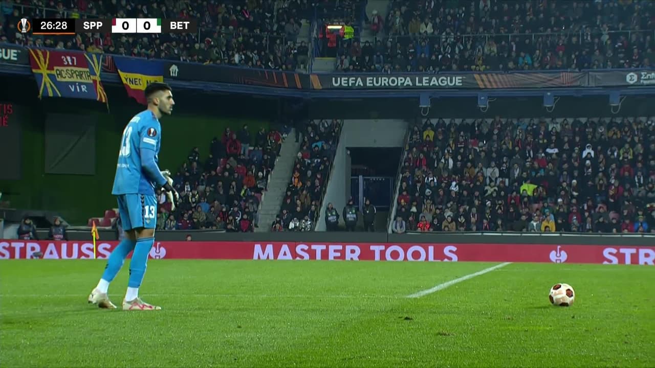 Tiro atajado. Borja Iglesias (Real Betis) zurdazo desde el centro del área.