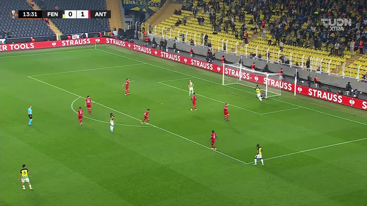 Tiro atajado junto al lado derecho de la portería. Bright Samuel (Fenerbahçe) zurdazo desde fuera del área. Asistencia de Enner Valencia.