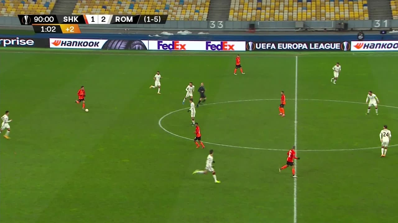 Tiro atajado. Carles Pérez (AS Roma) zurdazo desde el centro del área.