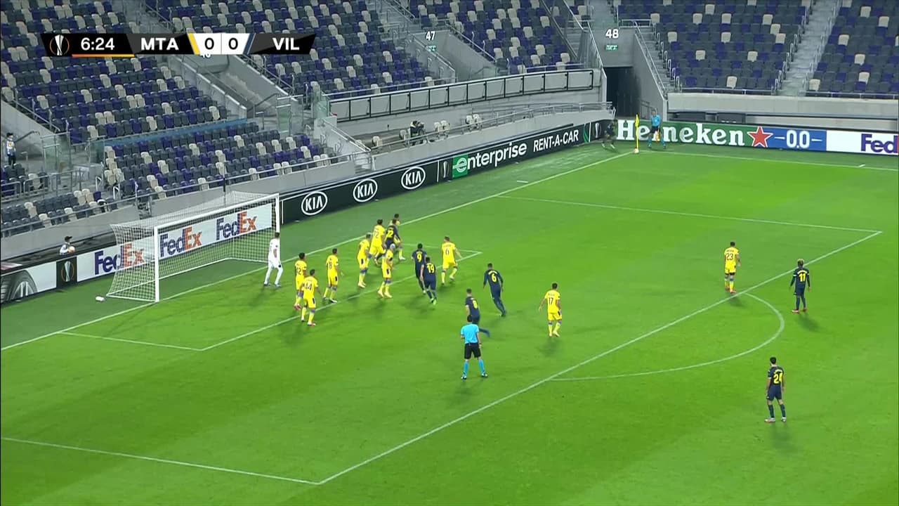 Tiro atajado. Carlos Bacca (Villarreal) Disparo con la derecha desde fuera del área.