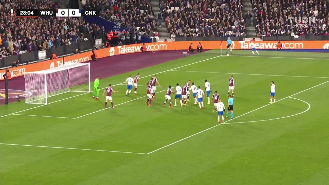 Tiro atajado al ángulo superior derecho. Carlos Cuesta (KRC Genk) Disparo con la derecha desde el centro del área. Asistencia de Paul Onuachu.