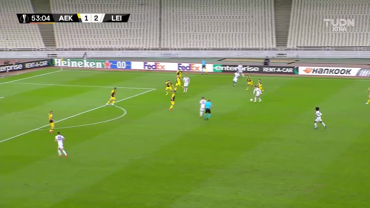 Tiro atajado Por arriba en el centro del arco. Cengiz Ünder (Leicester City) zurdazo desde fuera del área. Asistencia de Wesley Fofana.
