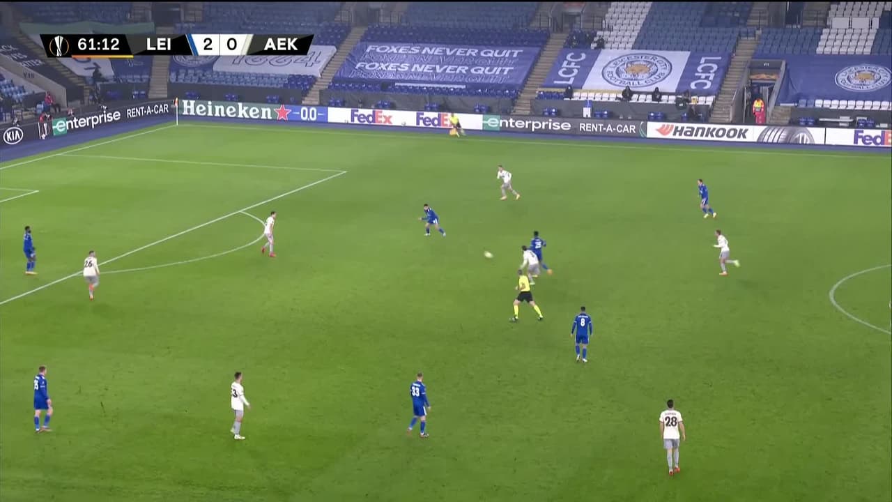 Tiro atajado raso al centro del arco. Cengiz Ünder (Leicester City) zurdazo desde fuera del área. Asistencia de Wilfred Ndidi.