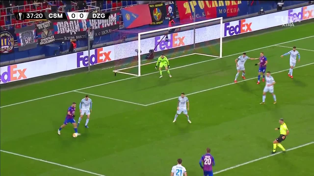 Tiro atajado por abajo a la izquierda. Chidera Ejuke (CSKA Moscow) Disparo con la derecha desde el centro del área. Asistencia de Nikola Vlasic.