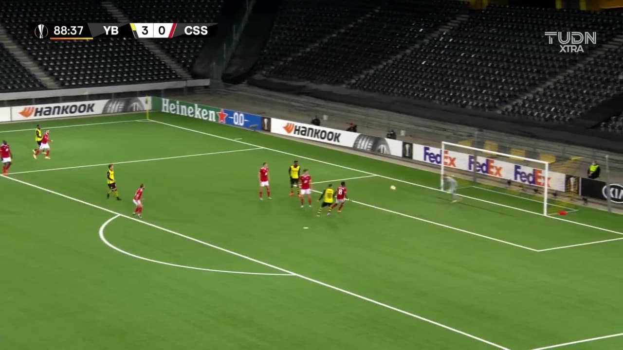 Tiro atajado raso al centro del arco. Christian Fassnacht (BSC Young Boys) Disparo con la derecha desde el centro del área. Asistencia de Ulisses García con un centro al área.