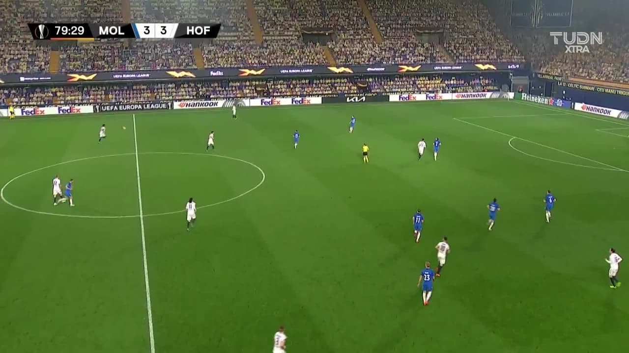 Tiro atajado al ángulo superior derecho. Christoph Baumgartner (TSG 1899 Hoffenheim) disparo de cabeza desde el centro del área. Asistencia de Sebastian Rudy con un centro al área.