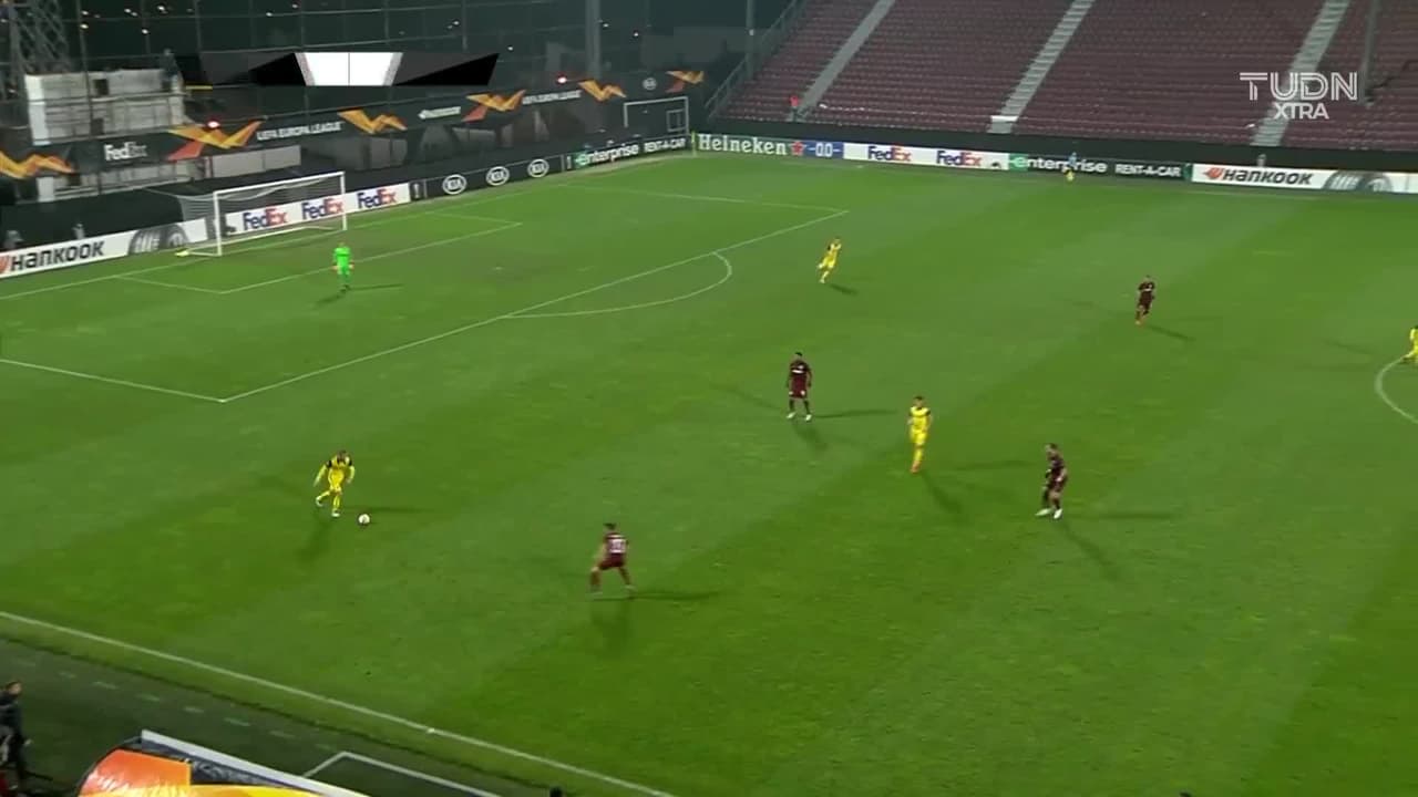 Tiro atajado raso al centro del arco. Alexandru Adrian Paun Alexandru (CFR Cluj) Disparo con la derecha desde el centro del área. Asistencia de Mario Júnior Rondón Fernández.