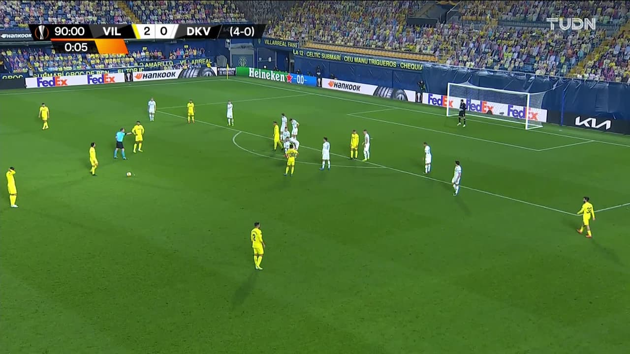 Tiro atajado Por arriba en el centro del arco. Daniel Parejo (Villarreal) Disparo con la derecha desde fuera del área.