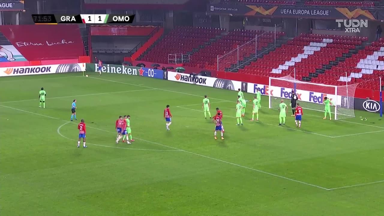 Tiro atajado por abajo a la izquierda. Darwin Machís (Granada CF) Disparo con la derecha desde el lado izquierdo dentro del área. Asistencia de Carlos Neva.