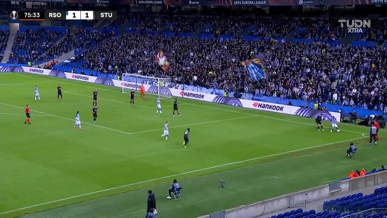Tiro atajado. David Silva (Real Sociedad) Disparo con la derecha sin ángulo desde la derecha.