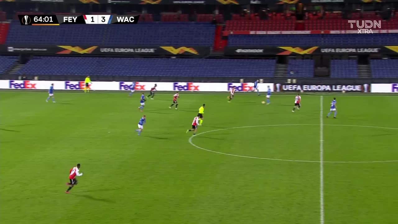 Tiro atajado Por arriba en el centro del arco. Dejan Joveljic (RZ Pellets WAC) disparo de cabeza desde el centro del área. Asistencia de Jonathan Scherzer con un centro al área.