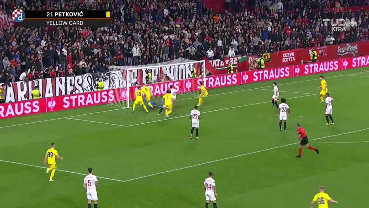 Tiro atajado por abajo a la izquierda. Deni Juric (Dinamo Zagreb) Disparo con la derecha desde muy cerca.