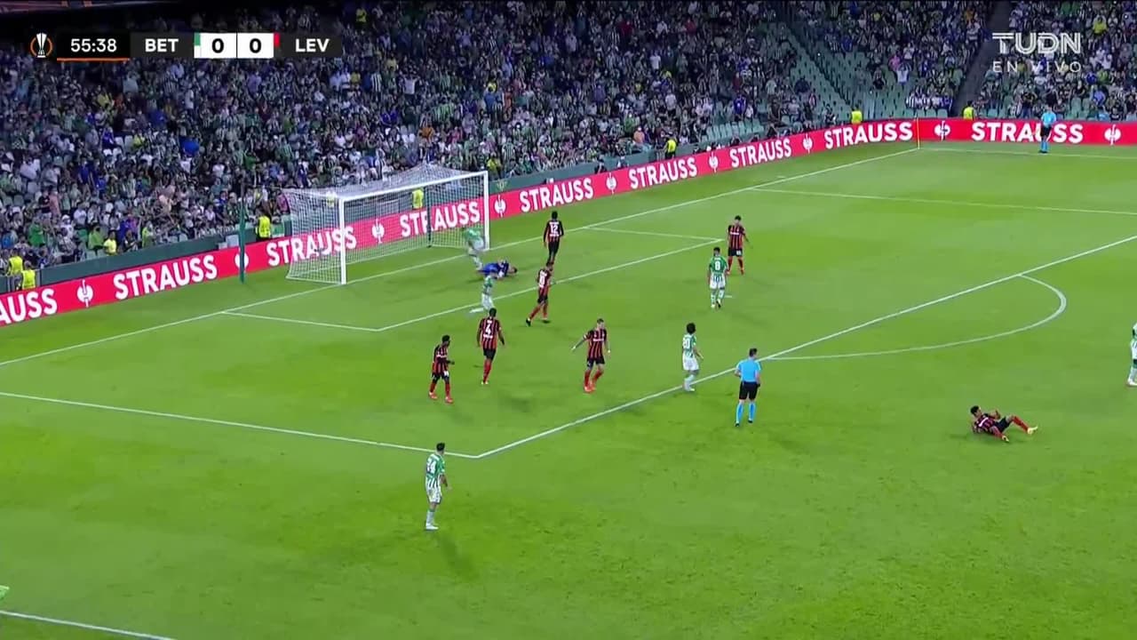 Tiro atajado junto al lado derecho de la portería. Diego Lainez (Real Betis) zurdazo desde el lado izquierdo dentro del área. Asistencia de Guido Rodríguez con un pase de cabeza.