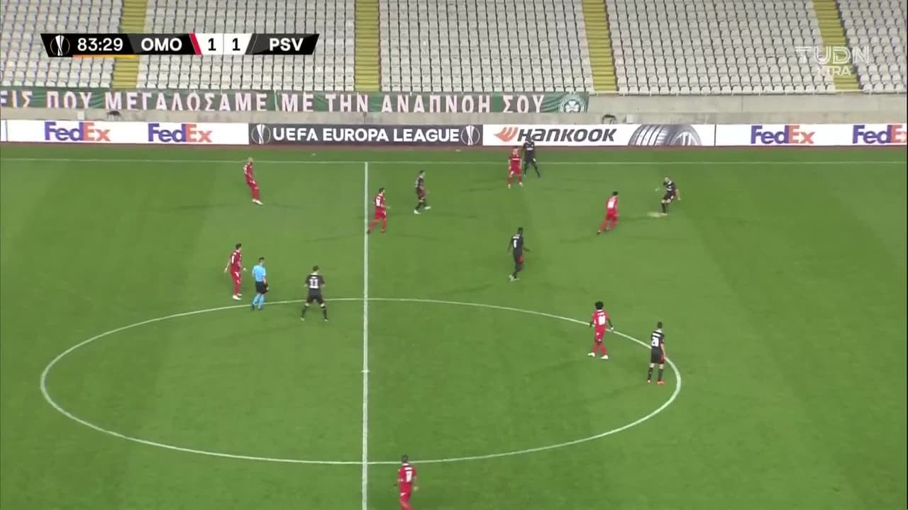 Tiro atajado por abajo a la izquierda. Donyell Malen (PSV Eindhoven) Disparo con la derecha desde el centro del área. Asistencia de Mohamed Ihattaren pase largo.