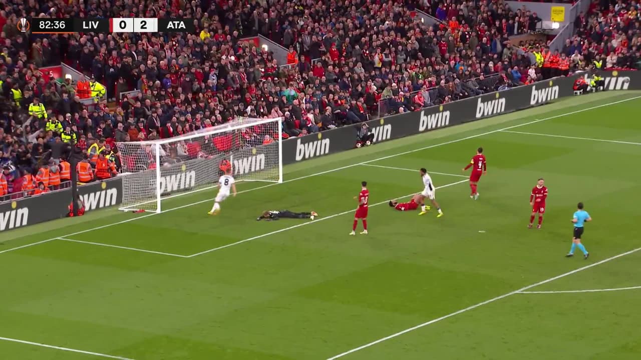 Tiro atajado raso al centro del arco. Éderson (Atalanta) Disparo con la derecha desde el centro del área.