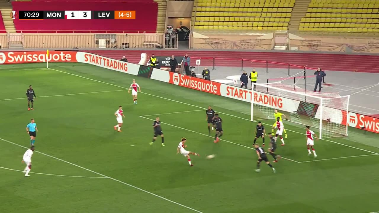 Tiro atajado raso al centro del arco. Eliesse Ben Seghir (AS Monaco) Disparo con la derecha desde el centro del área. Asistencia de Edan Diop.