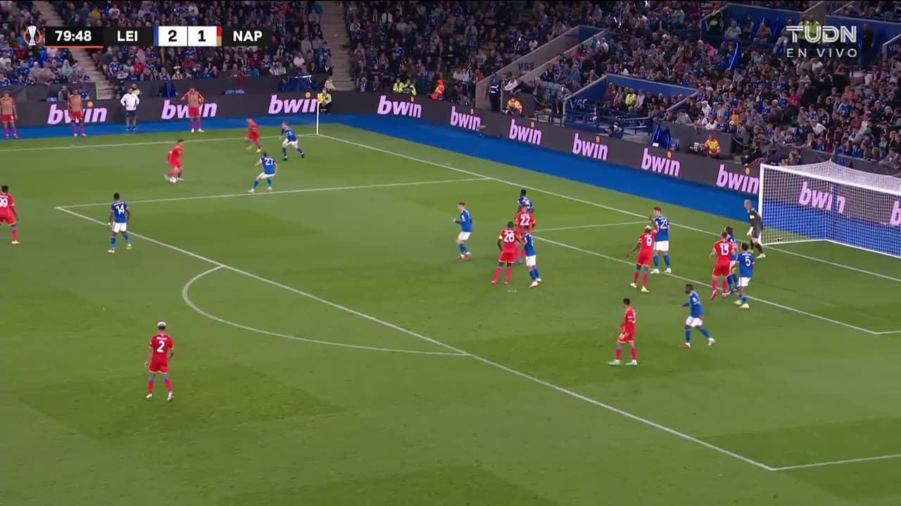 Tiro atajado al ángulo superior derecho. Eljif Elmas (Napoli) Disparo con la derecha desde el lado izquierdo dentro del área. Asistencia de Matteo Politano.